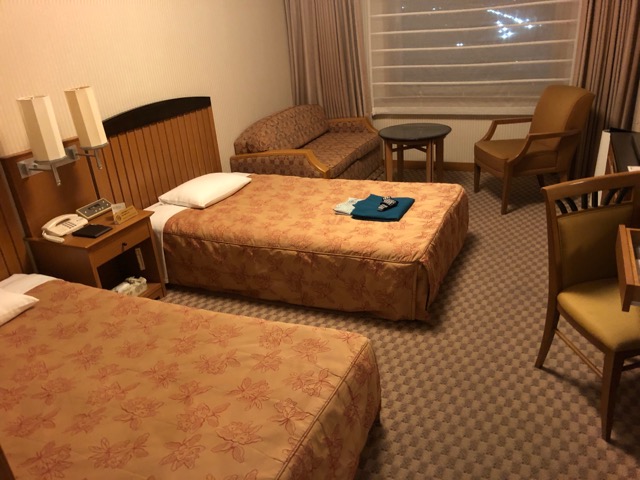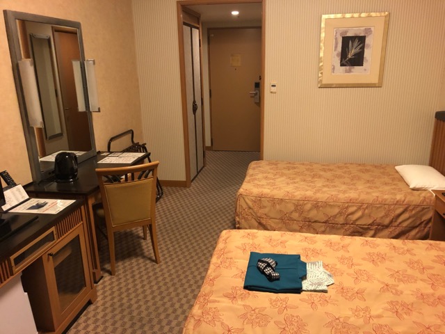 豪華な夕食付きの部屋もあるようだが、宿泊したのは小さめ和室シングル。