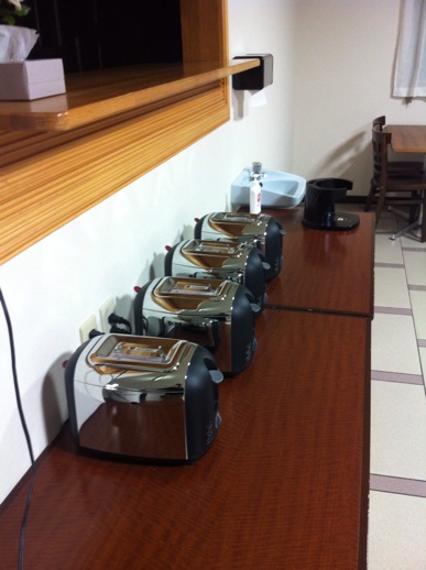 朝食は無料だけどトーストのみ!トースターがたくさん。