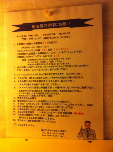 椅子に座ると目の前に、いろいろな注意書きがされてあります。
