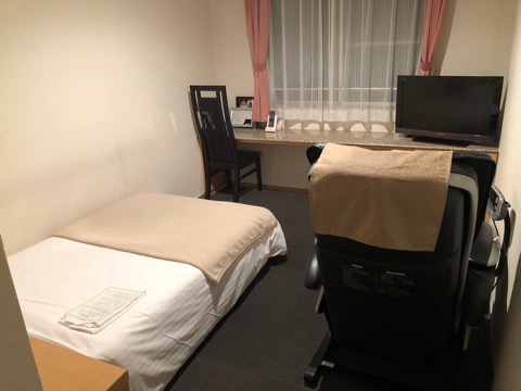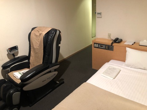部屋に入るとマッサージチェアーがあって驚く。全部屋に?すごい。