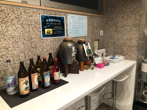 ロビーに焼酎バーがあって好きなのを飲める。1杯100円。