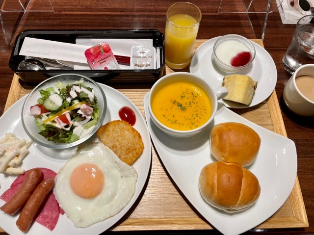 朝食はセルフサービスだが従業員が文字通りお膳立てしてくれる。