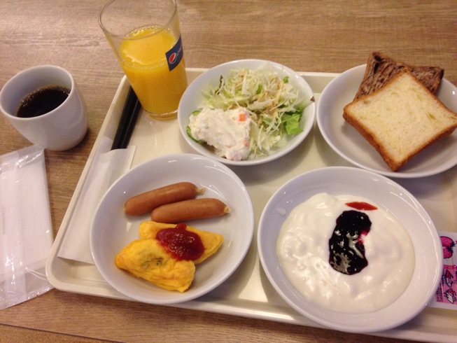 朝食は無料のバイキング、色々揃って充分。