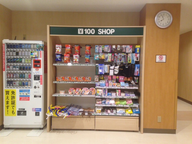 フロントの横に「100円ショップ」があって色々買える。