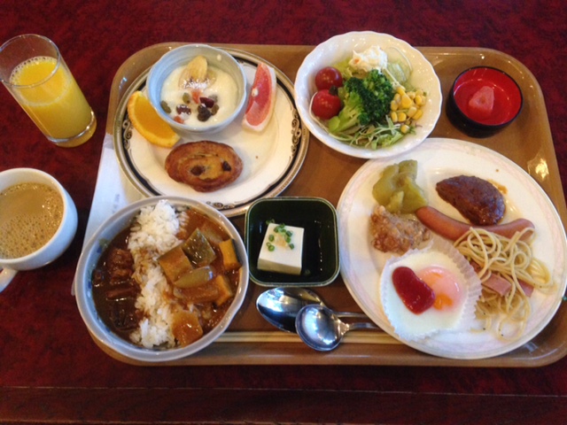 朝食にカレーが2種類ある!辛口の野菜カレーは本当に結構辛いので注意。