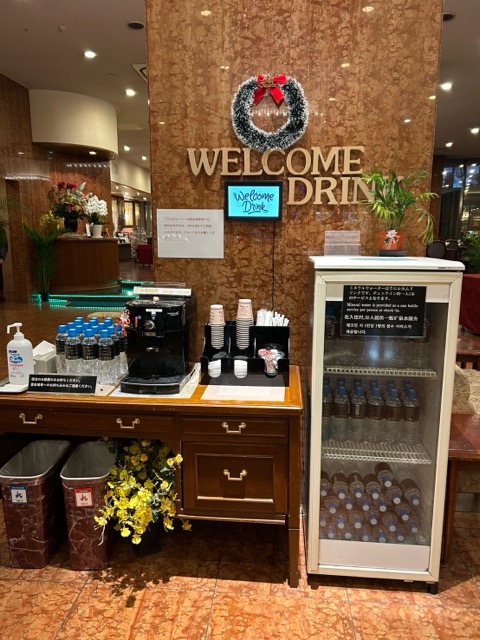 ウェルカムドリンク(コーヒー)あり。お水も1泊1本もらえる。