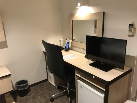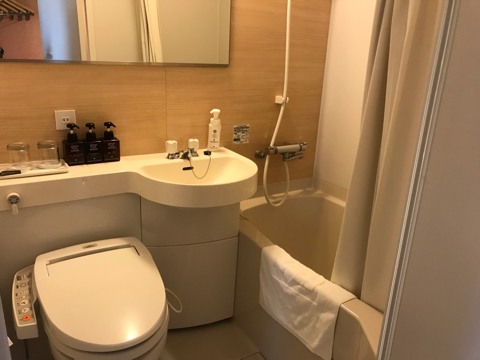 部屋はベッドと机の間が広々している。風呂場も広い印象。良いです。