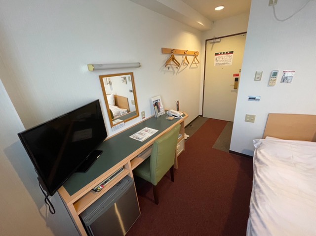 部屋はシングルはふたつのタイプがあるよう。テレビが壁掛けのタイプと、デスクが少し広くて、大きなテレビが置いてあるタイプ。