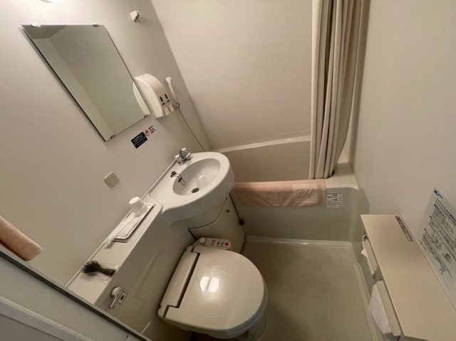 バスタブはものすごく狭い。大浴場がある。1階。2つあるエレベーターの片側は出入口に、片側は大浴場に繋がっている。
