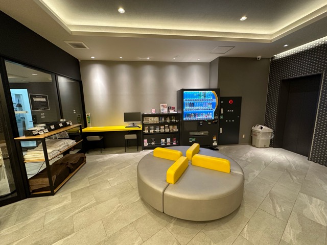 浴衣のSサイズはフロントでもらう。1階ではお土産も売ってる。