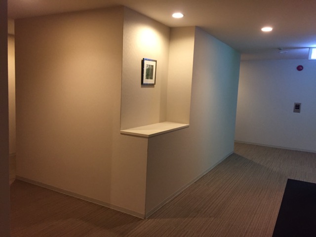 廊下の途中エレベーターがあるが1階のボタンが一見無い。