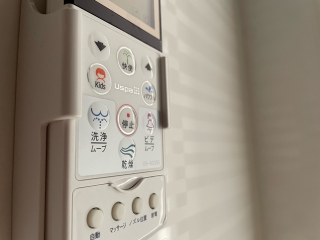 Uspaなるメーカーの温水洗浄便座、「快便」なるボタンがついていた。