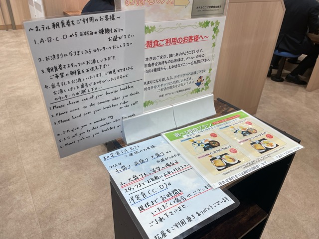 朝食は2階奥のスペース、朝食券とかは無く、フロントで部屋番号と名前を言うと入れる。