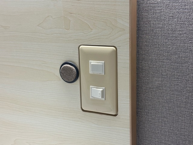 クローゼットの扉も風圧で開いてしまうのでドアに引っかかる。