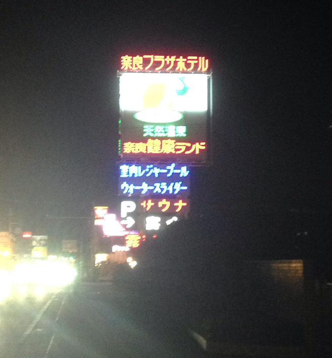 トラックで向かっていると、ゴテゴテのパチンコ屋みたいな看板が見えてなんじゃこりゃーと思っていたら今日の宿だった。