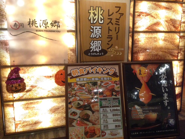 食事会場にステージがあって、毎週土日は13時と18時に吉本新喜劇、 平日も金曜日とかは夜に出し物がある。着いた日は笑撃舞踏団というのがやっていて、なにを言っているのかよくわからなかったのだけど、お客さん参加型で、ガラガラだったせいか外から見ていたら中でどうぞと言ってくれた。