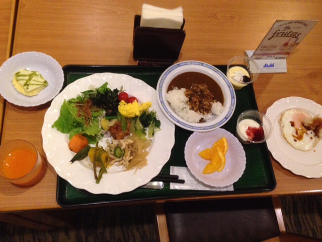 朝食は豪華バイキング。メニューは毎日同じ…と思いきや、1日目にあった抹茶ケーキとババロアは2、3日目は無かった。残念。プリンはあったけど。
