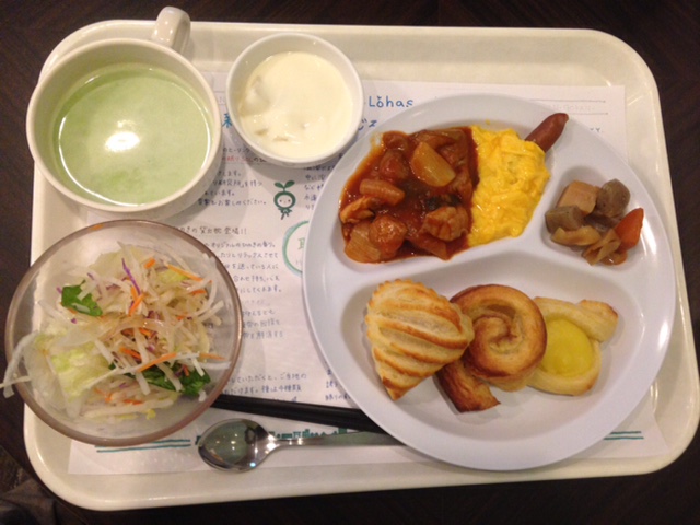 朝食の焼きたてパンが美味しい。そこで焼いているらしく、種類色々で、たくさん食べてしまった。朝食時ドリンクバー無料、とあって機械が並んでいたので、ココアとか色々あるのかなと思ったけど種類は少なかった。でもスープバーの機械は枝豆のポタージュとかトマトクリームスープとかまであってすごい。