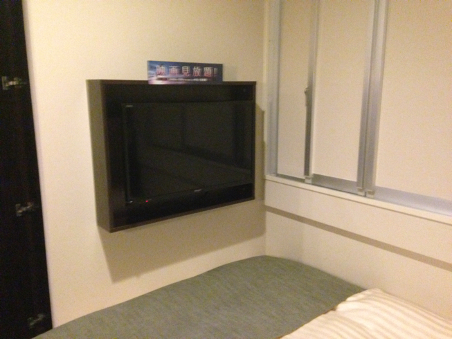 テレビはベッドに座らないとみられないけど、大きくてよい。