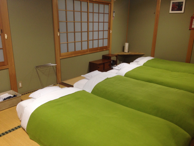 4人部屋と聞いていたけど、これはもはや8人部屋だった。分厚い布団というか床に置いてあるベッドというか。寝心地は悪くない。
