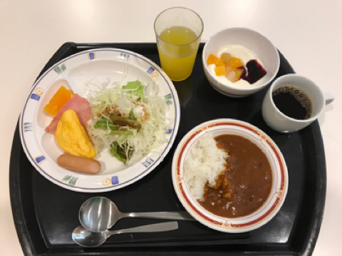 東横インで想像する感じとはだいぶ違って、スープいくつかあってご飯温かかったし茄子がゴロゴロしているカレー美味しかった。