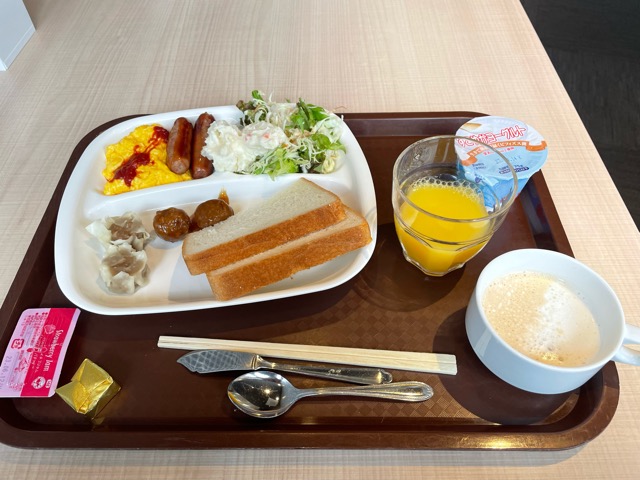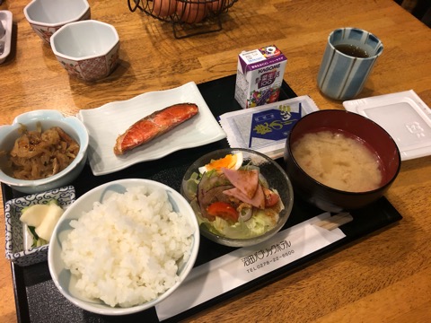 朝食は和定食。納豆はセルフなのでなんだか安心。