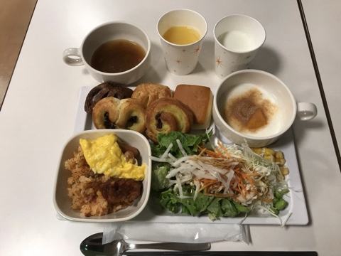 朝食は食べられなかったけど、無料で焼きたてパンで、コンフォートっぽい感じの写真だった。