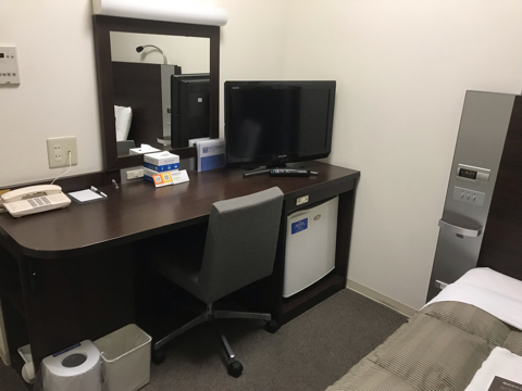 目の前のスーパーやダイソーが入ってる建物は、泊まった日も翌日も改装していて、「定休日」と書いてあった。
