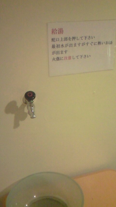 ポット片手に行ってみると。壁から蛇口が。