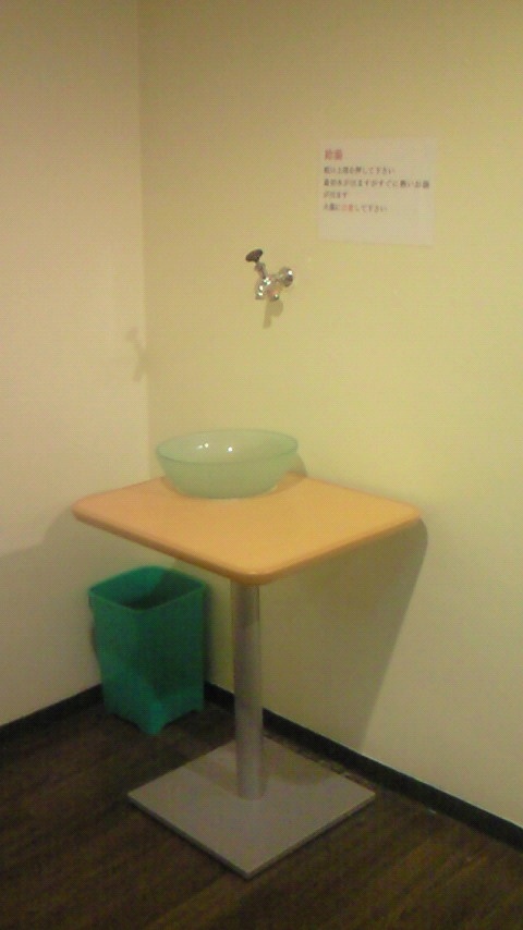 どうみてもただのテーブルにしか見えませんが、テーブルの脚は排水管になっているもよう。工夫されています。