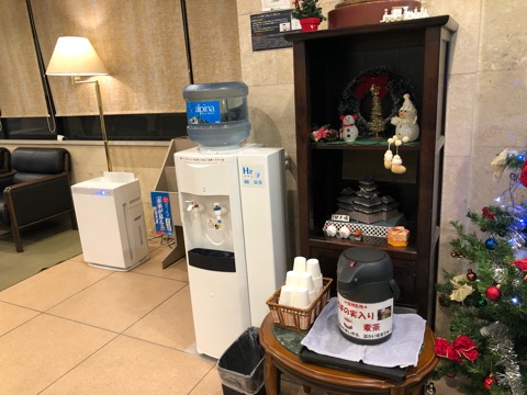 2階ロビーに蕎麦風味の麦茶のポットがあった。ありがたく飲む。