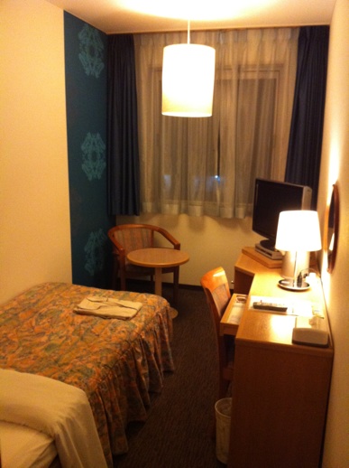 部屋は綺麗だがなんだか細長い。ベッドも小さいですよ。