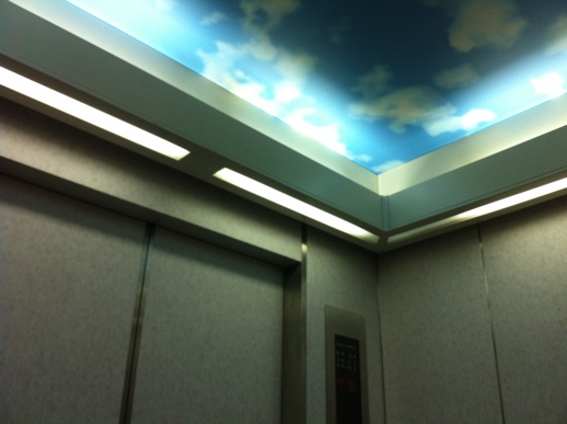 エレベーターは青空。世田谷パブリックシアターのようです。