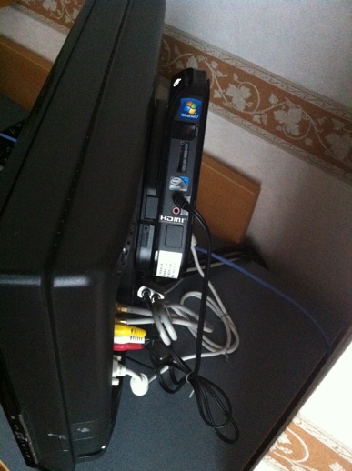 部屋にはテレビがありますが、傍にキーボードとマウスも。