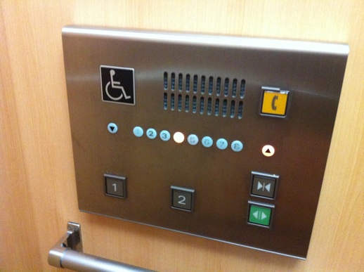 エレベーターの、車椅子用のボタンは二階まで。