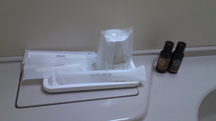 500mlの水と、シャンプーとコンディショナーの小瓶がついてた。サービス。