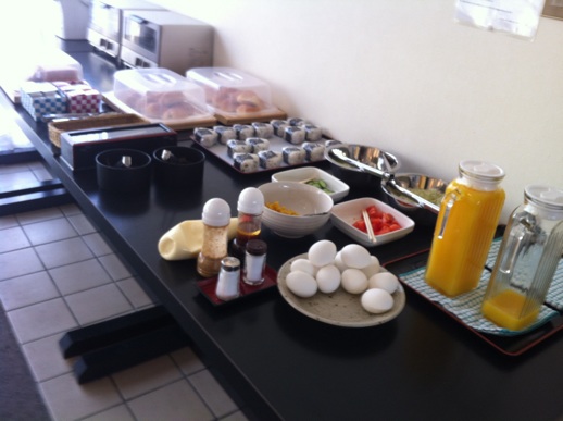 朝食は無料サービスですが、やはりちょっと淋しい。