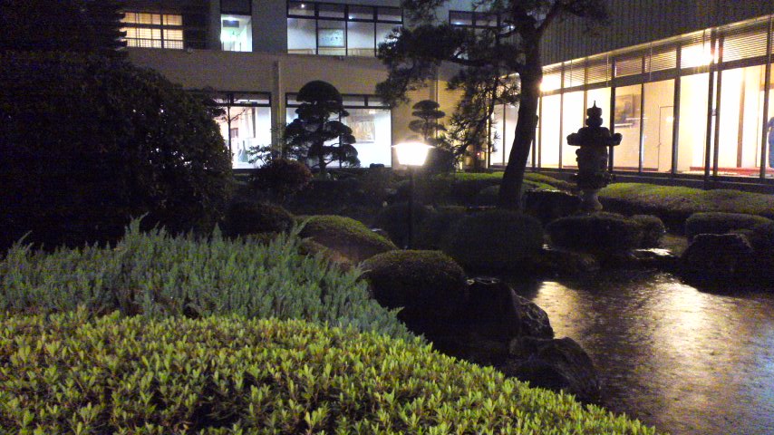 温泉の他に、中庭を見渡せる足湯もある。でも夜で雨降ってたのでぬるくて寒くて何分もいられなかった。