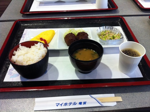 朝食はサービス。有料のは立派な丼だとか。