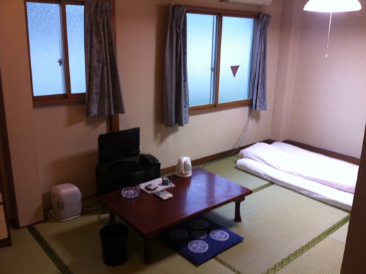 ホテルの部屋は和室。2階の同じ場所の部屋はツインの洋室。