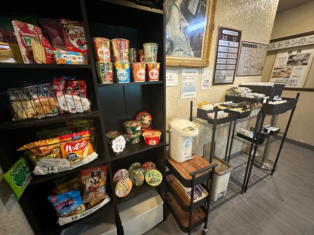 アメニティやカップ麺なども良い感じにある。