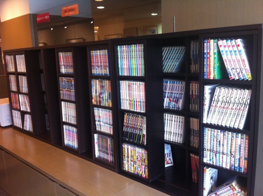 ロビーにたくさん漫画が置いてあります。
