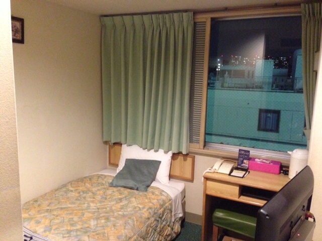 部屋は二重窓で、内側の窓は遮光。片側しか開かないので注意です。