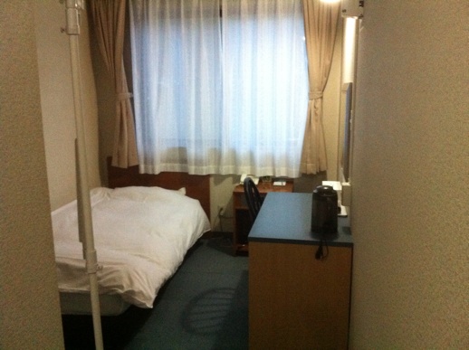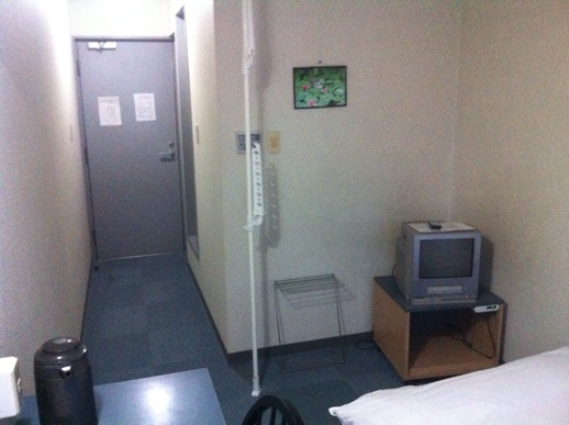 部屋の中に縦につっかえ棒が。ハンガーを掛けられるのだろうけど使わなかった。