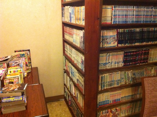 漫画の並びが古い!奇面組とか。借りる時はフロントに申告。
