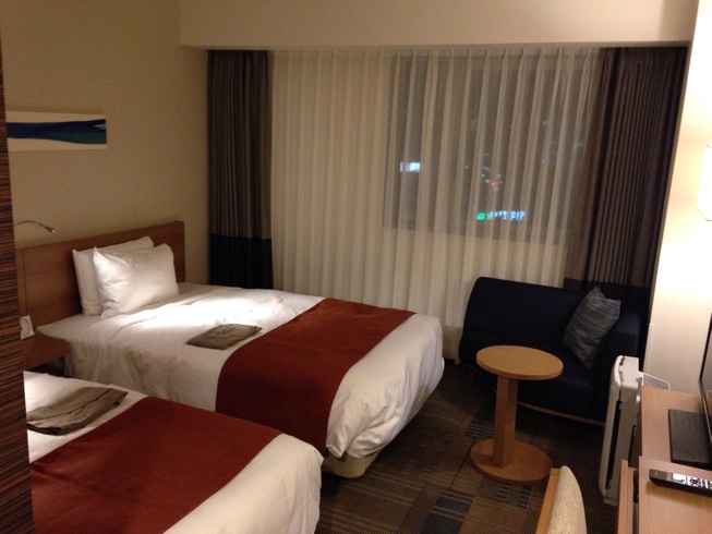 ツインの部屋に泊まった。広くて綺麗であるよ。テレビでかい。