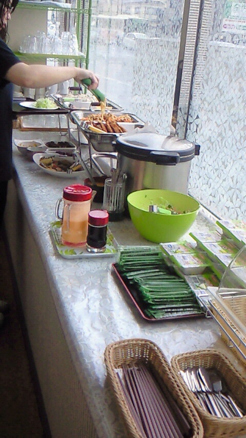 昔来たときは魚かハンバーグかを選ぶお弁当箱に入った朝食だっだと思うけど、バイキングになっていた。カレーもあったよ。