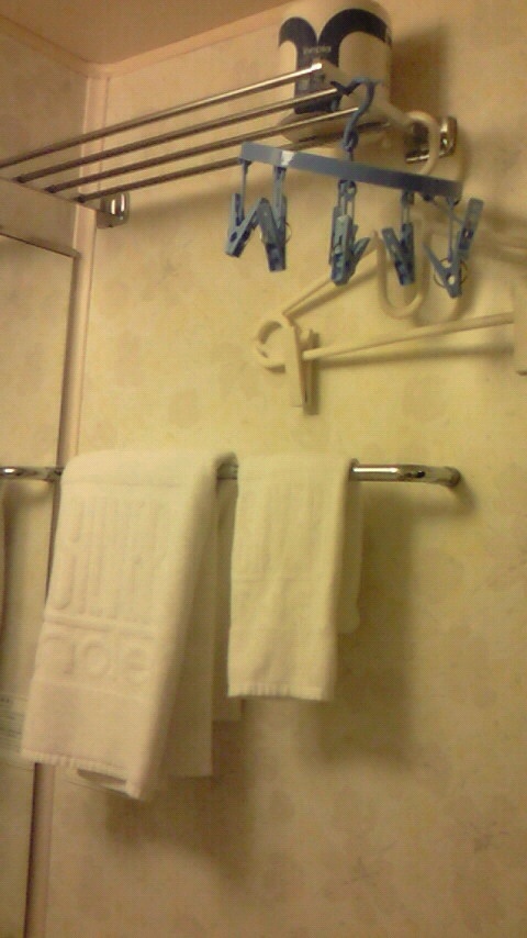 バスルーム、タオル掛けの横にピンチハンガーが。
