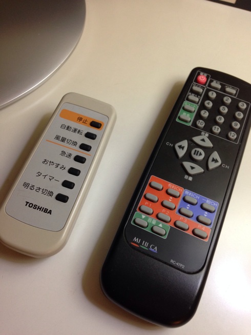 リモコンらしき物も使い方がわからない。裏のマジテも不明。