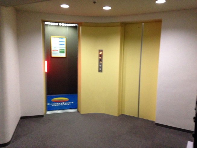 エレベーターが閉まる時に赤く光って安全っぽい。日立製。